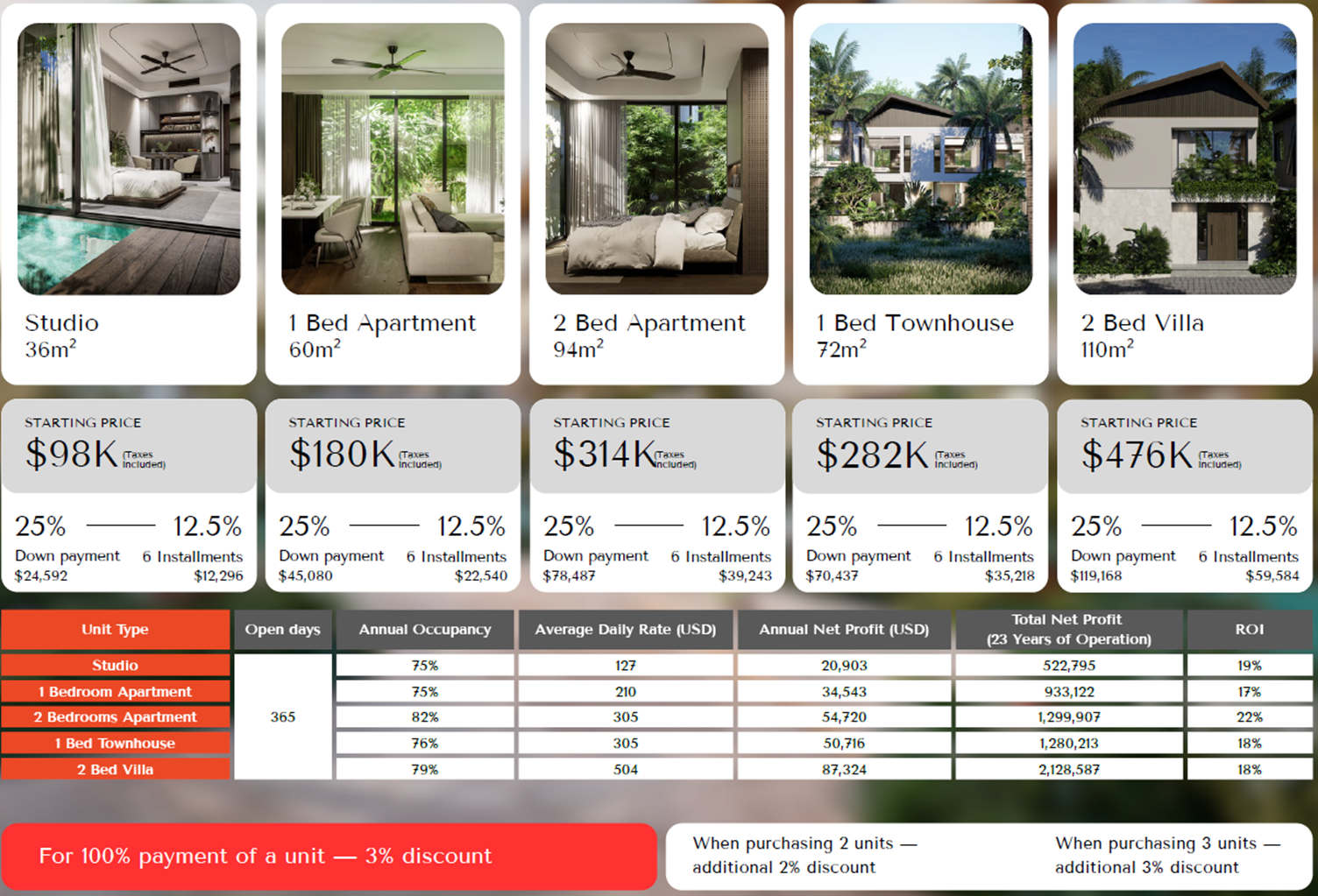 * Duration : 1 Studio ~ 2BR Villa : 365